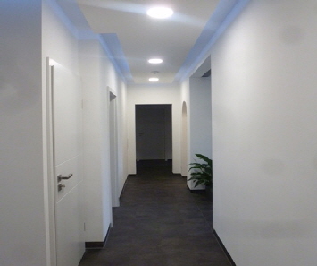 Dies beinhaltete zunächst eine nahezu komplette Entkernung der gesamten Kanzlei. Nach Entkernung wurden umfangreiche Trockenbaumaßnahmen, Maler- und Anstricharbeiten innen sowie außen sowie Bodenbelagsarbeiten durchgeführt.